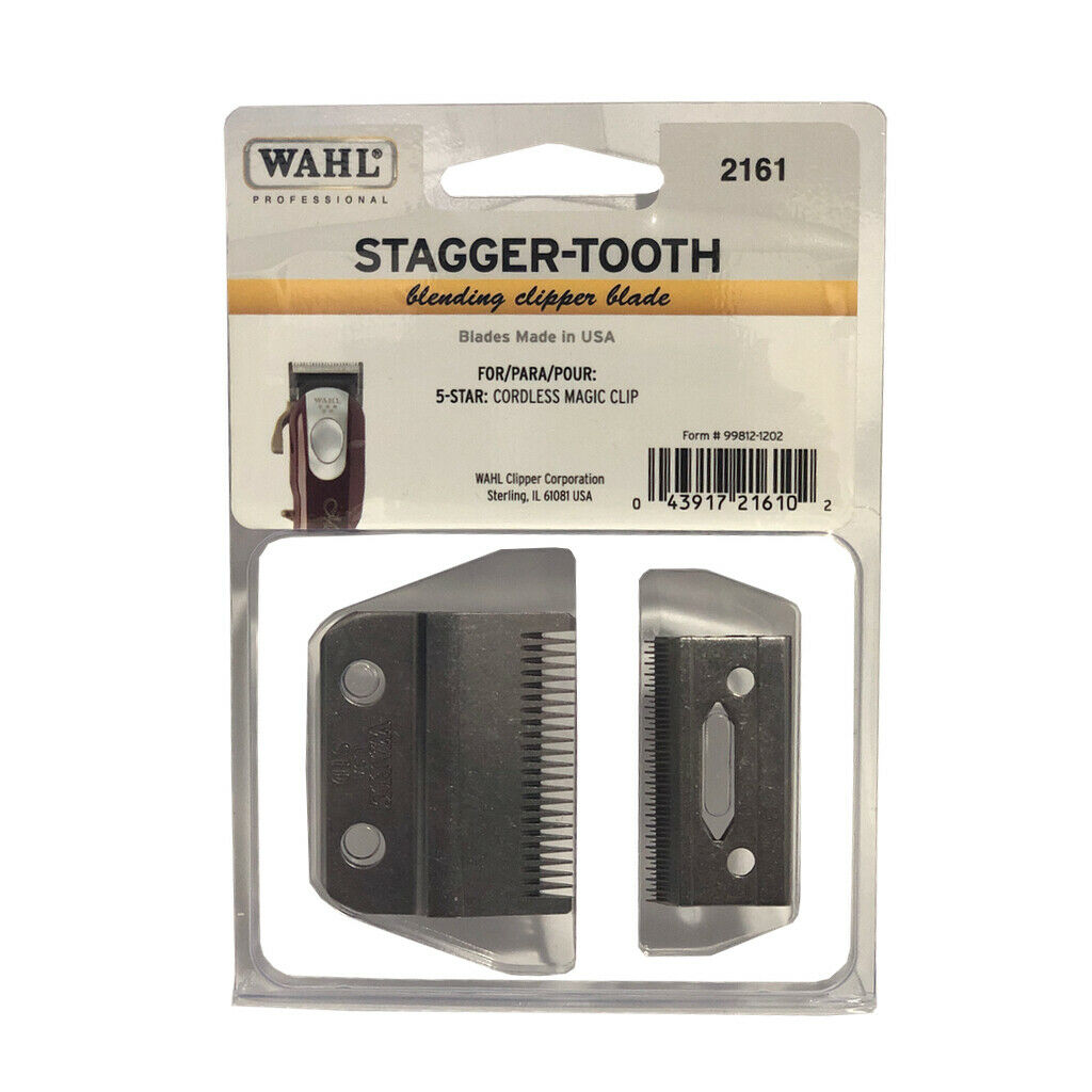 The Stagger Tooth Blade is designed to fit your Wahl Professional 5 Star Cordless Magic Clip #8148 to give you a reliable and secure fit. The unique Stagger-Tooth 2 Hole Clipper Blade is designed to blend hair and create texture while cutting. This blade is also designed to create seamless blends when hard or soft line fading. Package contains (1) Wahl Professional Stagger Tooth 2 Hole Clipper Blade #2161, oil, screws, and instructions. Works with the Wahl Professional 5 Star Cordless Magic Clip (#8148). Made in the USA.